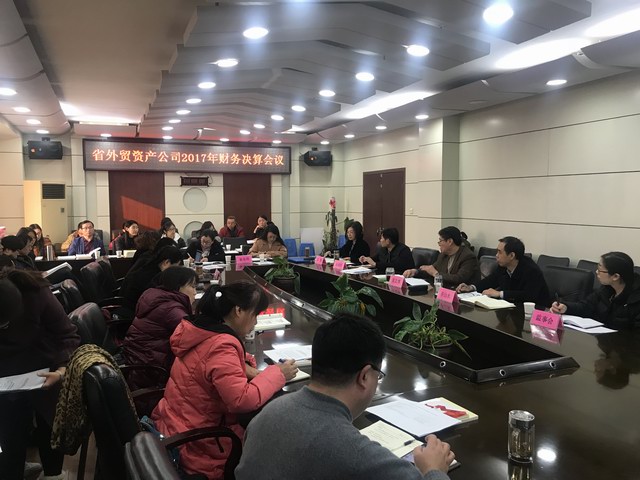 2017年12月28日,省外贸资产公司召开所出资企业2017年度财务决算工作会议,公司副总裁张文博同志、纪委书记齐山水同志参加会议并讲话,国资委驻企监事会监事王素敏同志参加会议,公司财务管理部、审计与风险管理部、所出资企业的财务负责人、具体承办财务决算和预算编制的工作人员、负责公司审计工作的中介机构项目负责人参加了会议。