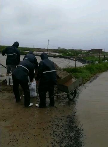 “利奇马”真的来了!10日晚上,养殖基地所在区域就开始出现强降雨,随着“利奇马”的影响不断加强,雨越下越大,由大雨到暴雨再到大暴雨,风越刮越狂,一度达到10-11级,唐山市发布风暴潮黄色警告,高达380cm的风暴潮位大大超过往年最高水位,进、排水沟的潮水与坝面持平,部分地段还出现倒灌现象。紧急关头,党员领导干部冲在一线,党支部书记焦建改同志夜间带领支部班子成员坚守值班。晚8点左右沿海养殖区开始大面积停电,为保证育苗室不断电,党支部委员、乐亭分公司经理李建章连续三天盯着发电机。11日凌晨狂风暴雨到达极限,抢险组的同志们严阵以待。9点钟,基地东厂区传来险情,年近60岁的共产党员、乐亭分公司副经理李同泽同志立即带队赶赴现场,冒着狂风暴雨,一口气装了200多个沙土袋,及时把缺口堵住;傍晚时分,西区的一处排水口出现堵塞,李建章同志带领大家冒雨抢修;西区巡圈员党组河报告闸口线路出现问题,李建章同志又立即赶过去,顶着风雨进行检修,线路修好了,他的浑身也湿透了……
