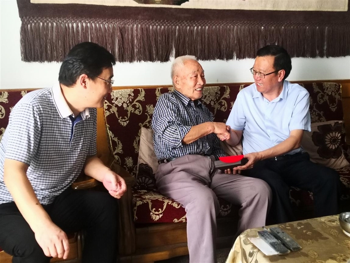 李光同志首先在张元贞等同志的陪同下,走访慰问了89岁高龄的离休干部、老党员赵荣昌,并向有着73年党龄的赵荣昌老人颁发了庆祝中华人民共和国成立70周年纪念章,送去了慰问金和慰问品。