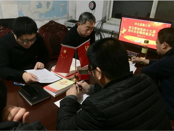 按照省外贸资产公司党委的安排部署,12月7日,河北蓝翼公司党支部组织召开全体党员大会,传达学习贯彻党的十九届四中全会精神,部分非党员职工列席了会议。会议由党支部书记、董事长焦建改同志主持,他首先传达了省外贸资产公司党委书记、董事长、总裁张元贞同志在省外贸资产公司召开的学习贯彻党的十九届四中全会精神宣讲报告会上所作的《深入学习贯彻党的十九届四中全会精神推动企业改革发展工作取得新成效》的报告;党支部副书记、副总经理董群同志作了题为《结合蓝翼公司实际全面贯彻落实党的十九届四中全会精神》的宣讲报告;最后,支部组织委员、副总经理赵海潮同志为全体党员上党课,对党的十九届四中全会通过的《中共中央关于坚持和完善中国特色社会主义制度、推进国家治理体系和治理能力现代化若干重大问题的决定》核心内容做了全面解读。