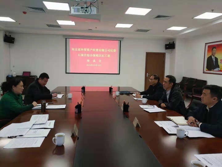 2019年12月13日下午省外贸资产公司党委常委、纪委书记齐山水带领公司系统纪检干部到石家庄综合保税区纪工委考察参观学习。在综保区党工委委员、纪工委书记邵平等同志的陪同下,实地参观了综保区基础建设、项目建设以及石家庄新和纤维科技股份有限公司等入驻企业。