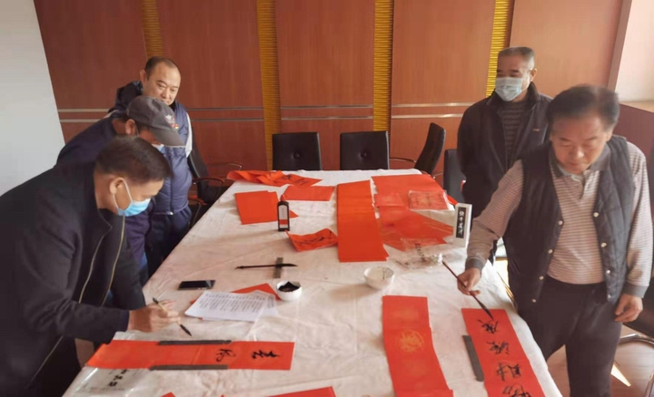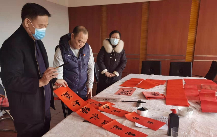 “无联不成春,有联春更浓”,过年中最具仪式感的事,莫过于精心准备几幅春联。为表达对在前阶段居家防控疫情期间,广大干部职工积极防疫并就近参加志愿服务,为疫情防控工作做出贡献的敬意,并为“十四五”开好局鼓舞斗志、凝聚力量,统筹疫情防控和高质量发展两手抓、两不误,营造喜庆祥和的新春佳节氛围,在春节来临之际,机关工会组织有书法特长的同志们为大家写春联、送祝福。在活动现场,杨景山、王金鑫、杨贵海、武涛为大家精心书写了一幅幅红彤彤的春联和“福”字,一份份新春的祝福在笔端流淌。公司驻地抗疫志愿服务者和职工纷纷到现场挑选心仪的春联,书写现场还接受“个人订制”,以满足大家的个性化需求,浓浓的年味儿扑面而来。