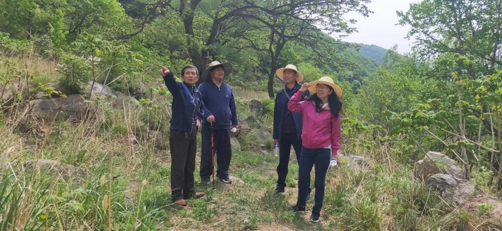 5月20日,公司领导与新老驻村工作队共同前往贺家沟林果经济示范基地,现场调研基地建设和果树嫁接进展情况。(驻村工作队提供)