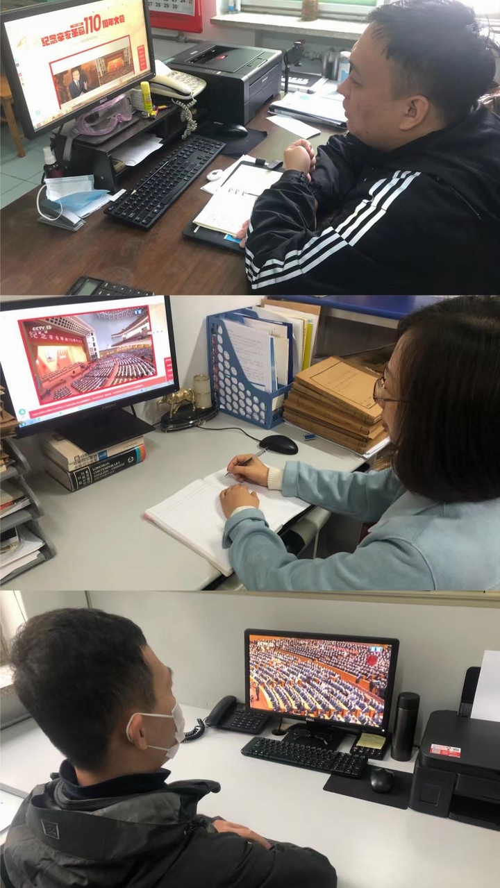 邢台玹捷党员干部职工收看纪念辛亥革命110周年大会