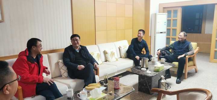 图为公司党委书记、董事长张元贞与当地主要领导进行座谈