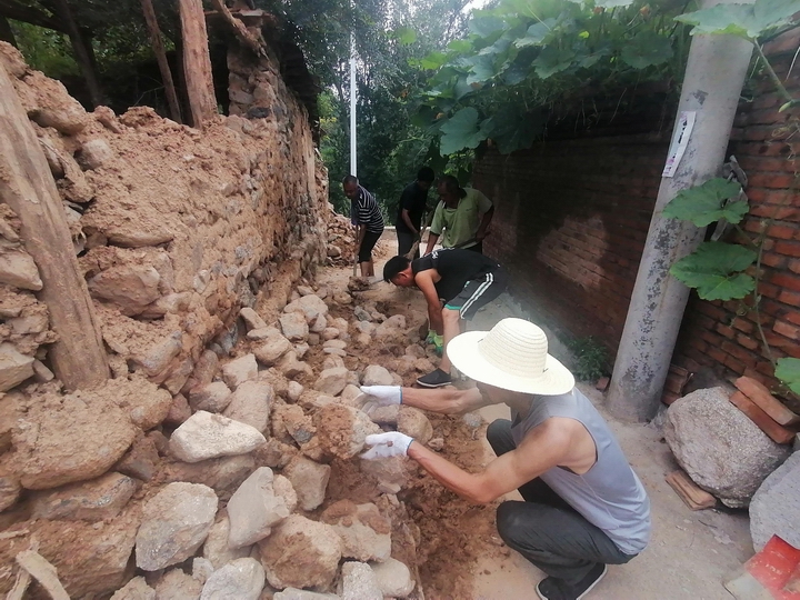 洪水过后,为防止疫情发生,组织村里十几名留有人员进行街道垃圾清理、残墙落石消除,排查安全隐患,对全村进行全面消杀。