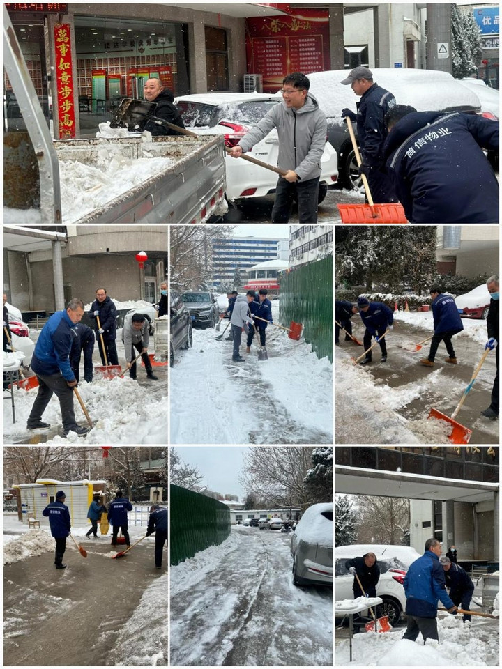 经过两个多小时的奋战,大家将园区内的主要出入口和道路的积雪全部清扫干净。虽然大家弄湿了鞋子,弄脏了衣服,但是看着为职工和业主开辟的这条通畅之路,每个人的脸上都洋溢着自豪的笑容。