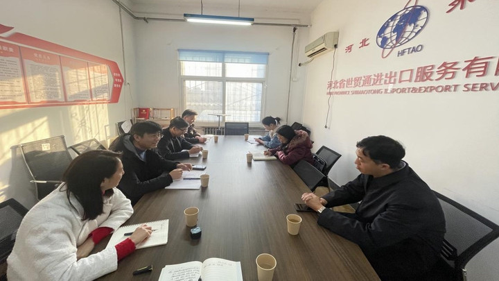 12月26日,河北外贸公司工会主席张艳芳到分管企业河北省世贸通进出口服务有限公司调研指导工作,并开展节前安全检查。综合办公室和财务管理部相关人员陪同,河北世贸通党支部书记、董事长、总经理张志军及班子成员参加调研座谈会。